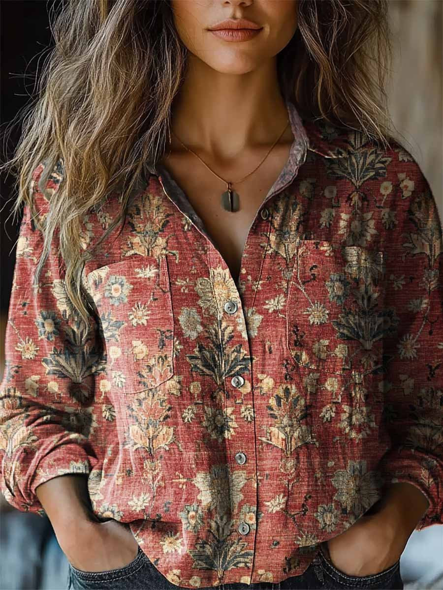 Women's Retro Ethnic Pattern Casual Long Sleeve Comfortable Cotton Shirt