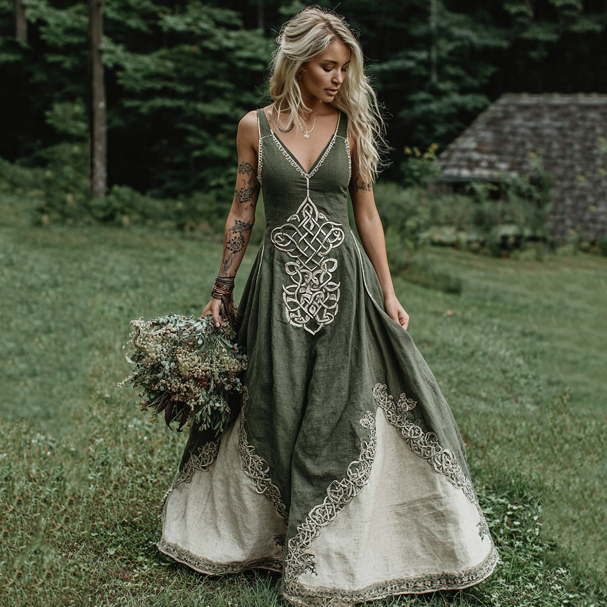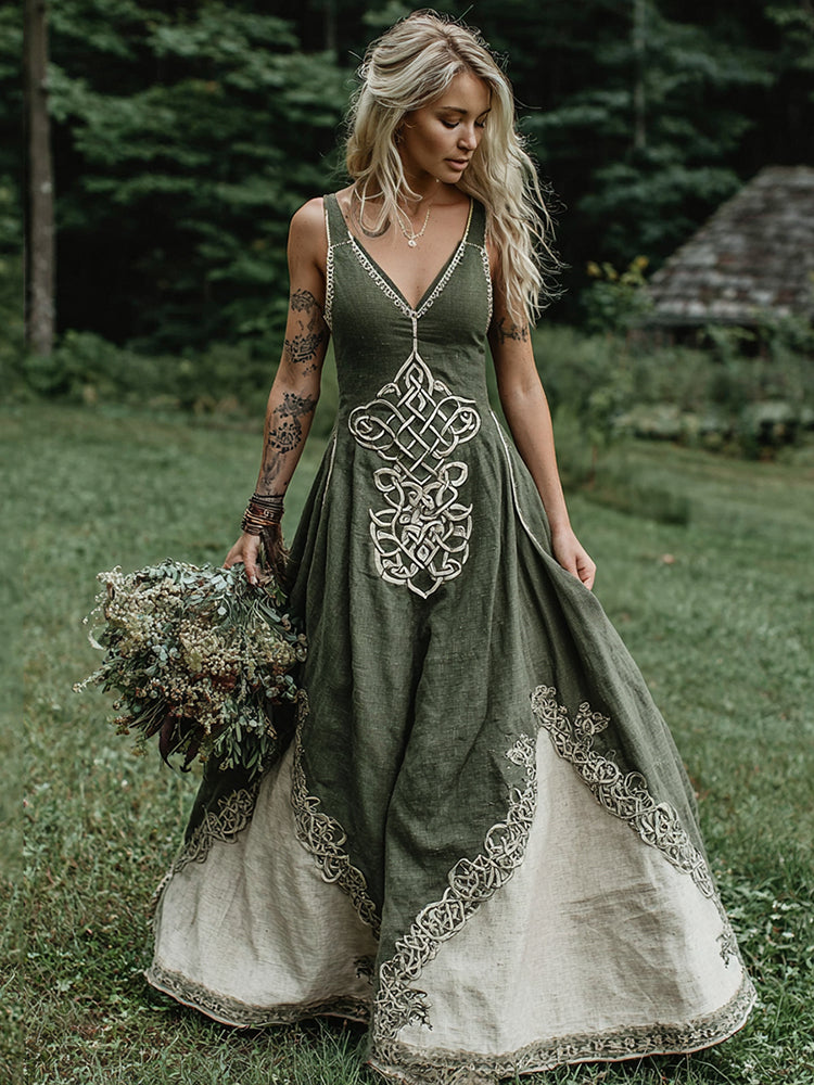 Women's Viking Celtic Art V-neck Maxi Dress