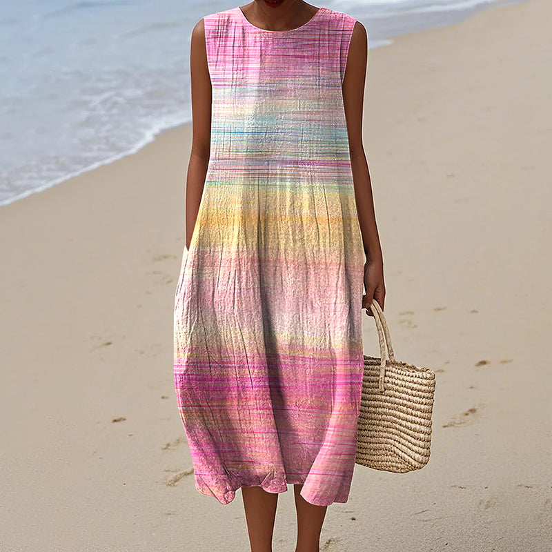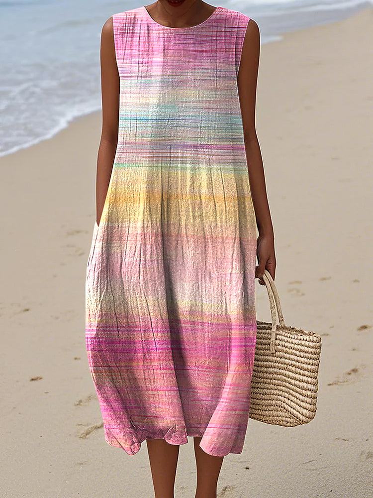 Women's Vintage Gradient In Cancer Awareness Ribbon Art Pattern Print Sleeveless Cotton Wrap Dress