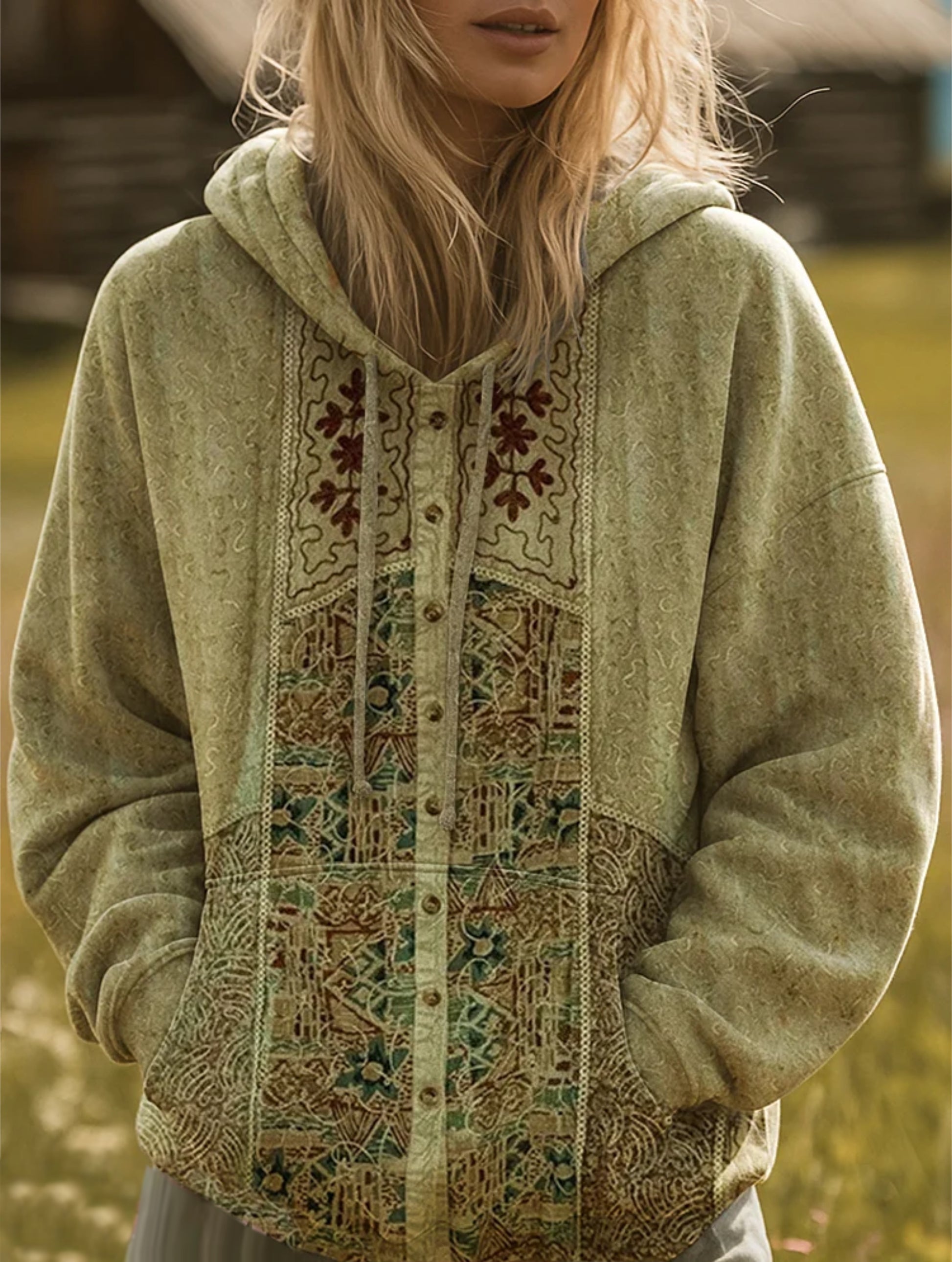 Retro Ethnic Pattern Art Print Casual Hoodie