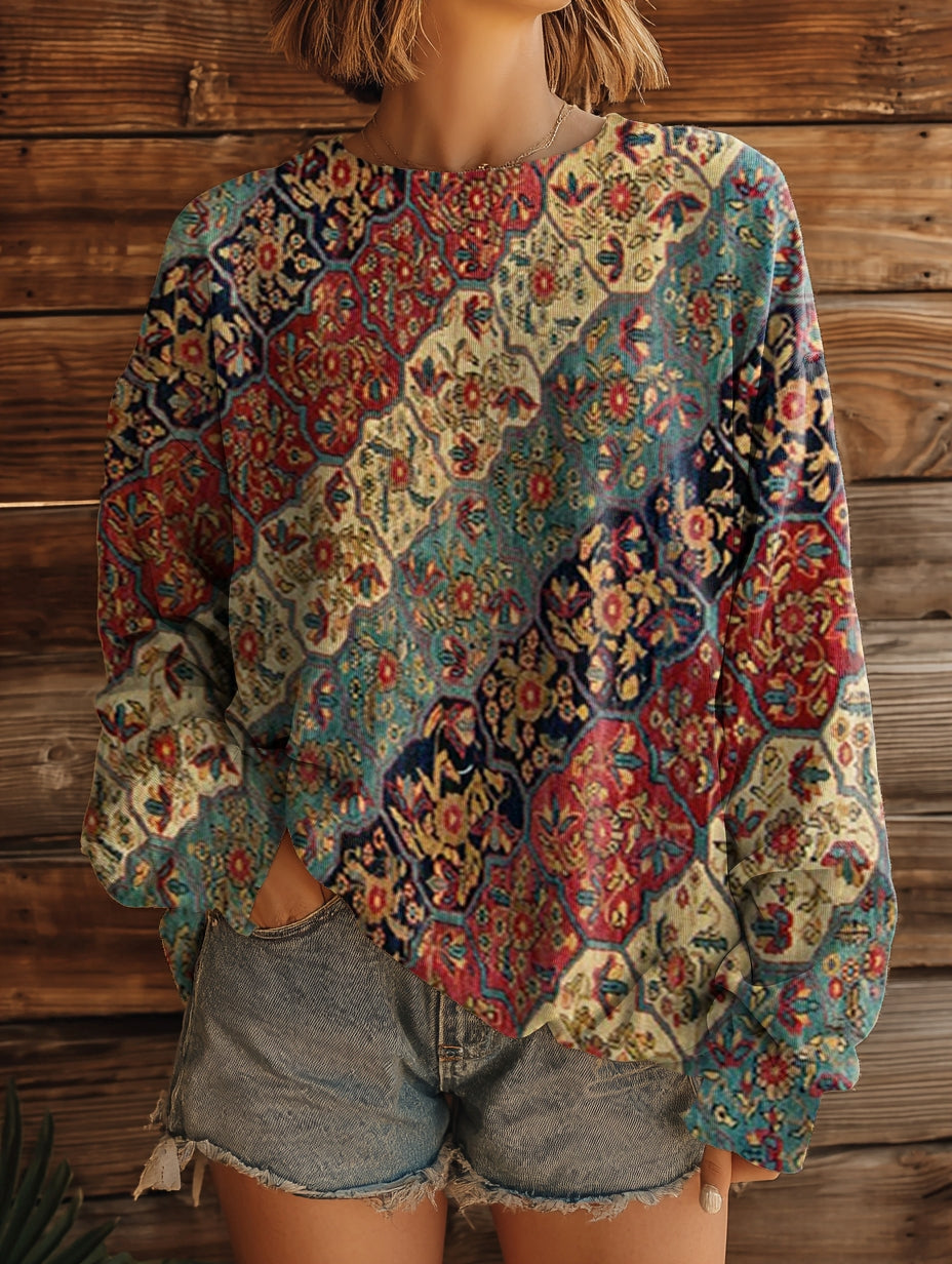 Women's Bohemian Ethnic Totem Art Print Casual Crew Neck Sweatshirt