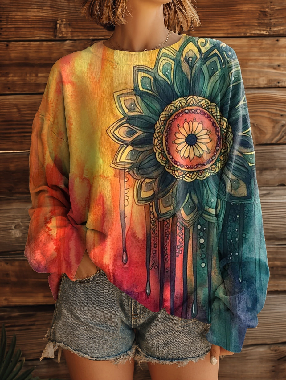 Women's Colorful Mandala Print Casual Crew Neck Sweatshirt