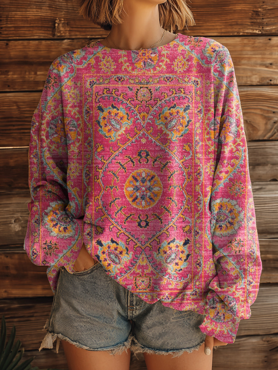 Women's Colorful Retro Totem Art Pattern Print Casual Crew Neck Sweatshirt