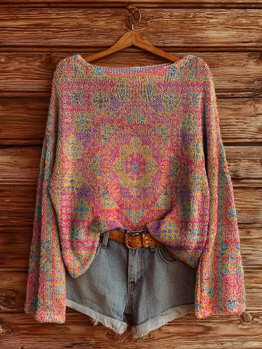 Women's Ethnic Totem Art Pattern Print Casual Pullover Sweater