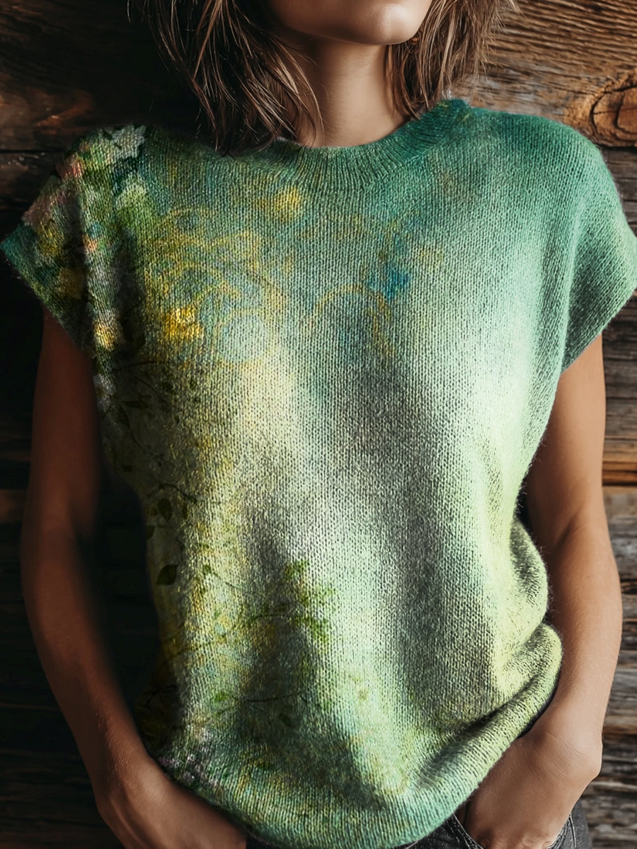 Women's Floral Tattoo Pattern Art Print Casual Crew Neck Short Sleeve Knit Sweater