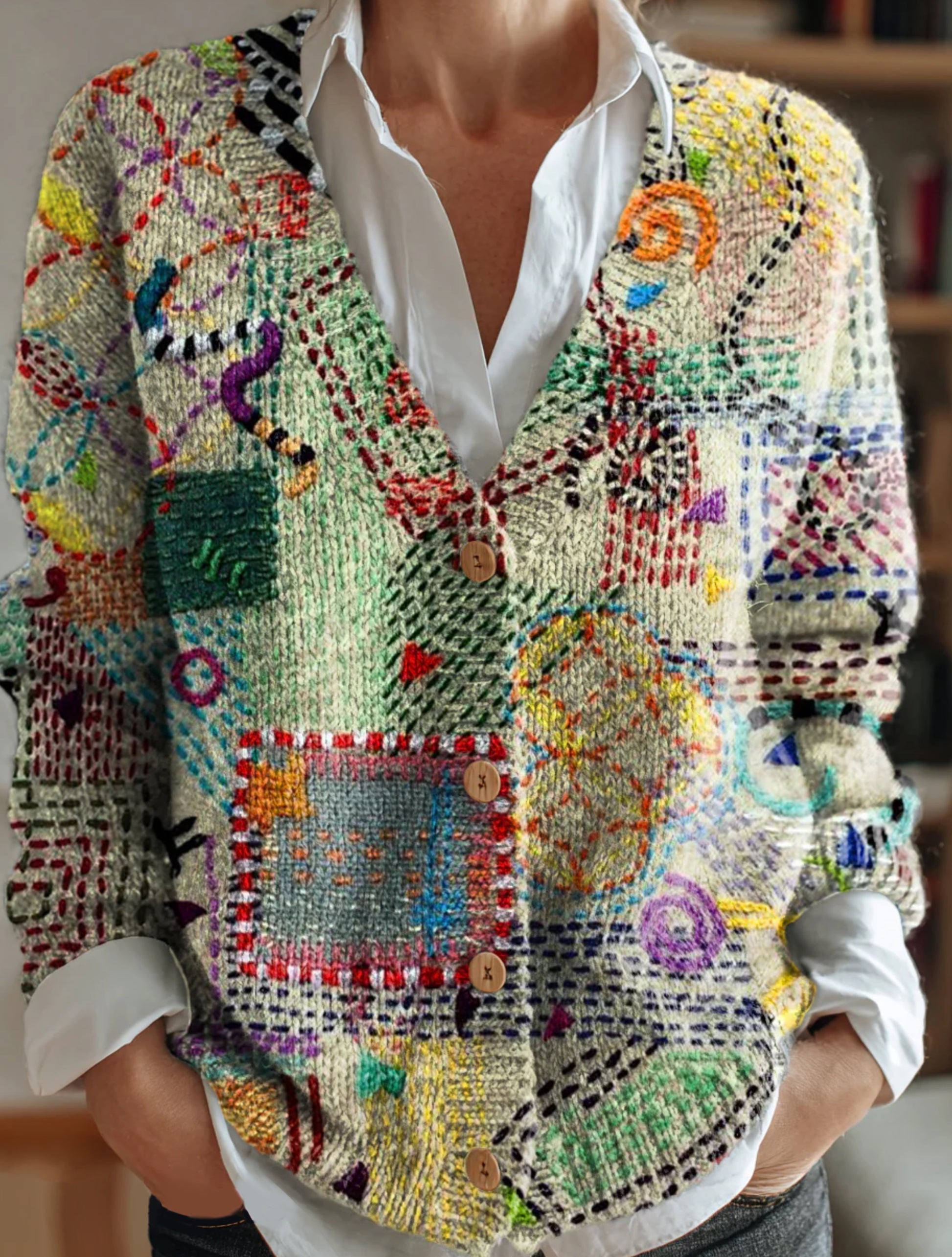 Women's Patchwork Stripes Geometric Pattern Printed Casual Knitted Long Sleeve Top