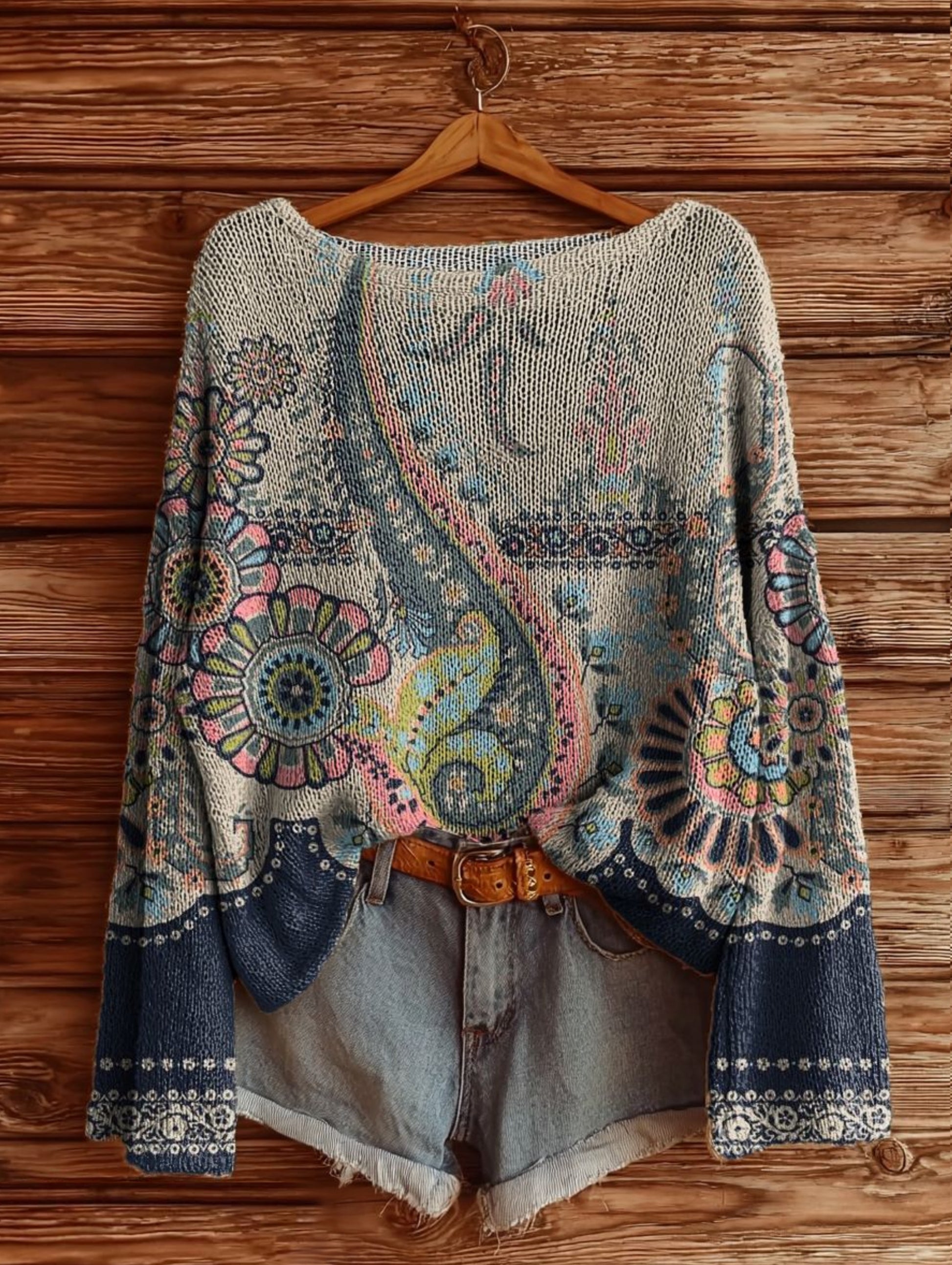 Women's Retro Ethnic Floral Pattern Artistic Print Casual Knit Sweater