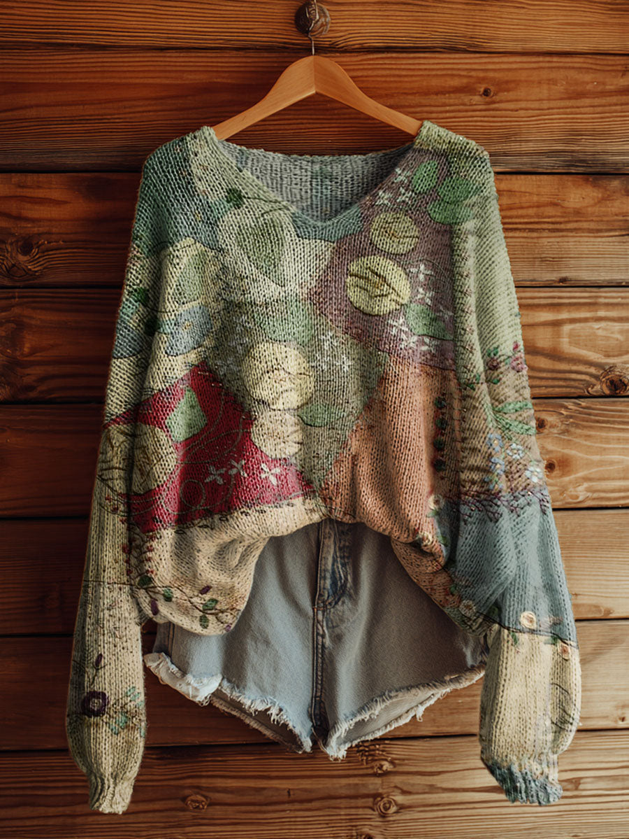 Women's Retro Ethnic Patchwork Art Casual Pullover Sweater