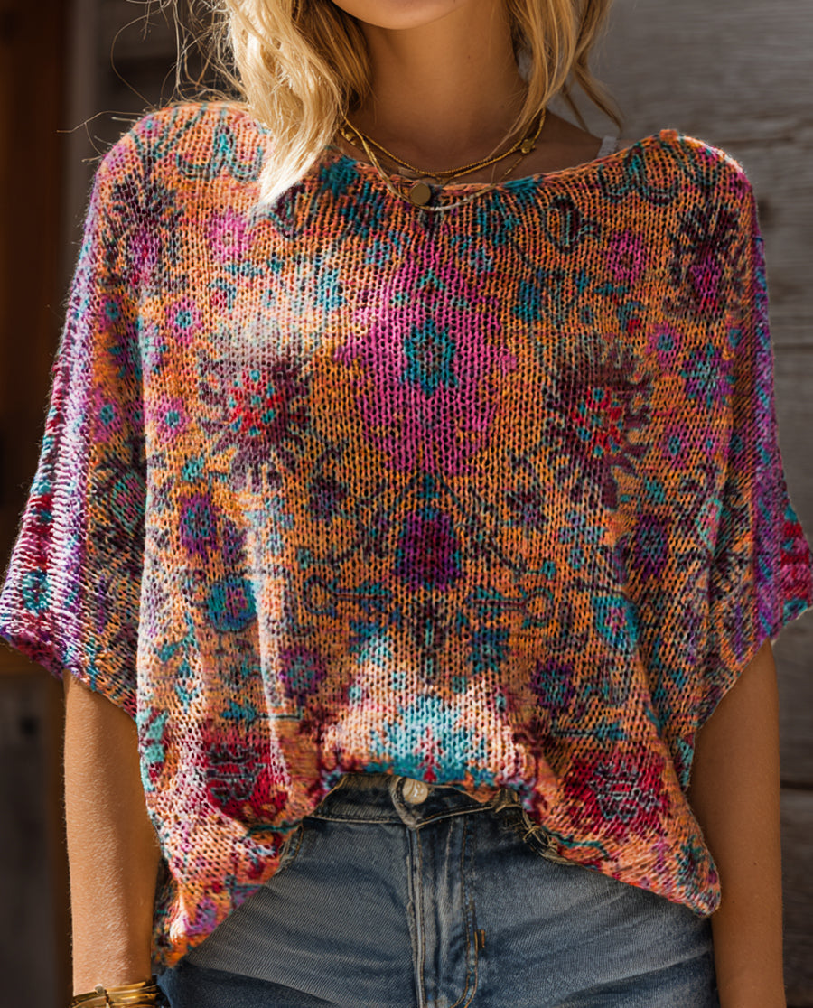 Women's Retro Ethnic Totem Art Pattern Print Casual Pullover Sweater