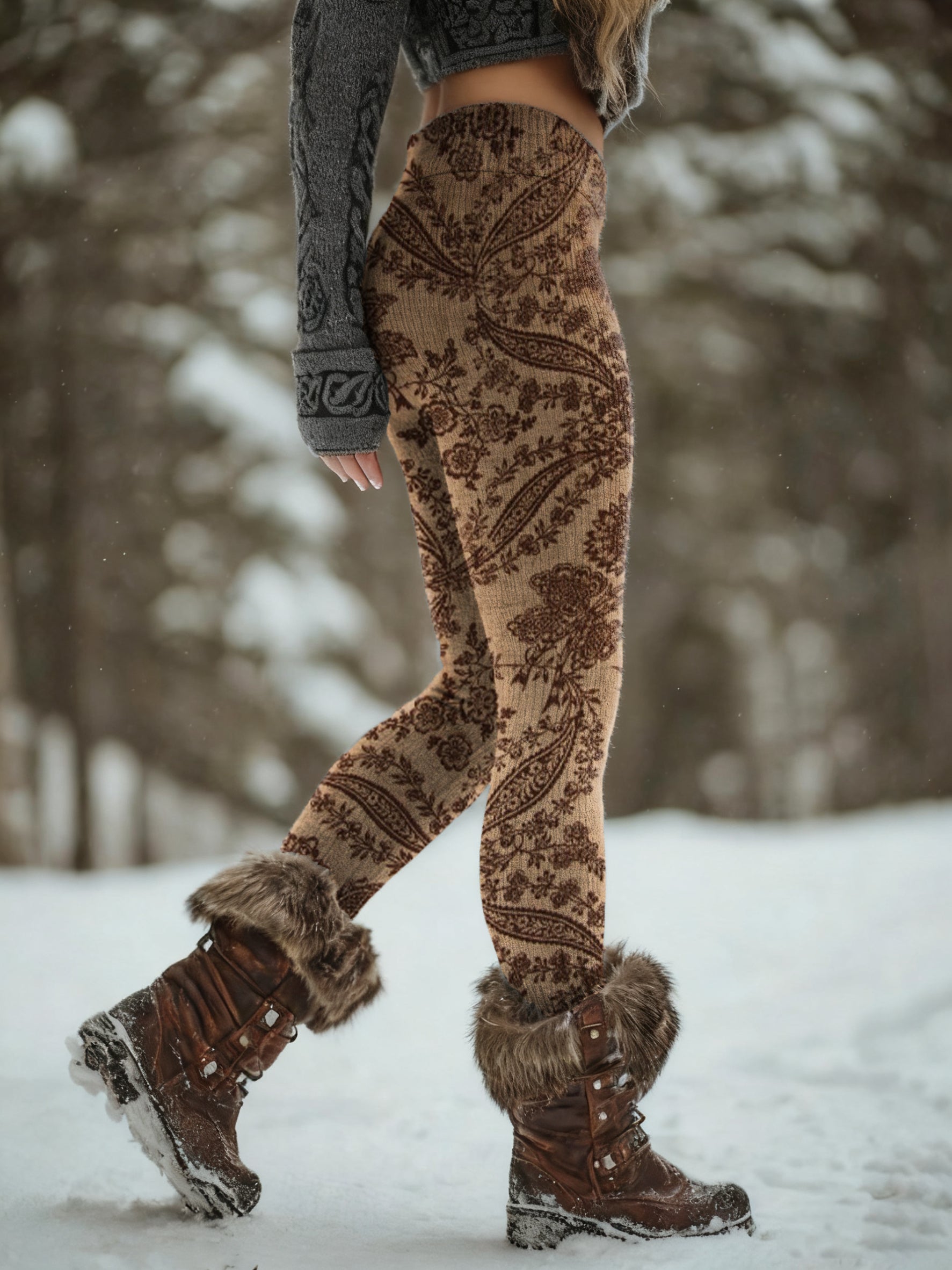 Women's Vintage Curry Floral Art Print Knit Bottoms